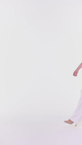 The wide-leg pants provide elegance and freedom of movement, with a drape that elongates the silhouette. Side pockets also feature guipure lace, creating a harmonious visual connection with the blouse and elevating the set to a refined casual sophistication.